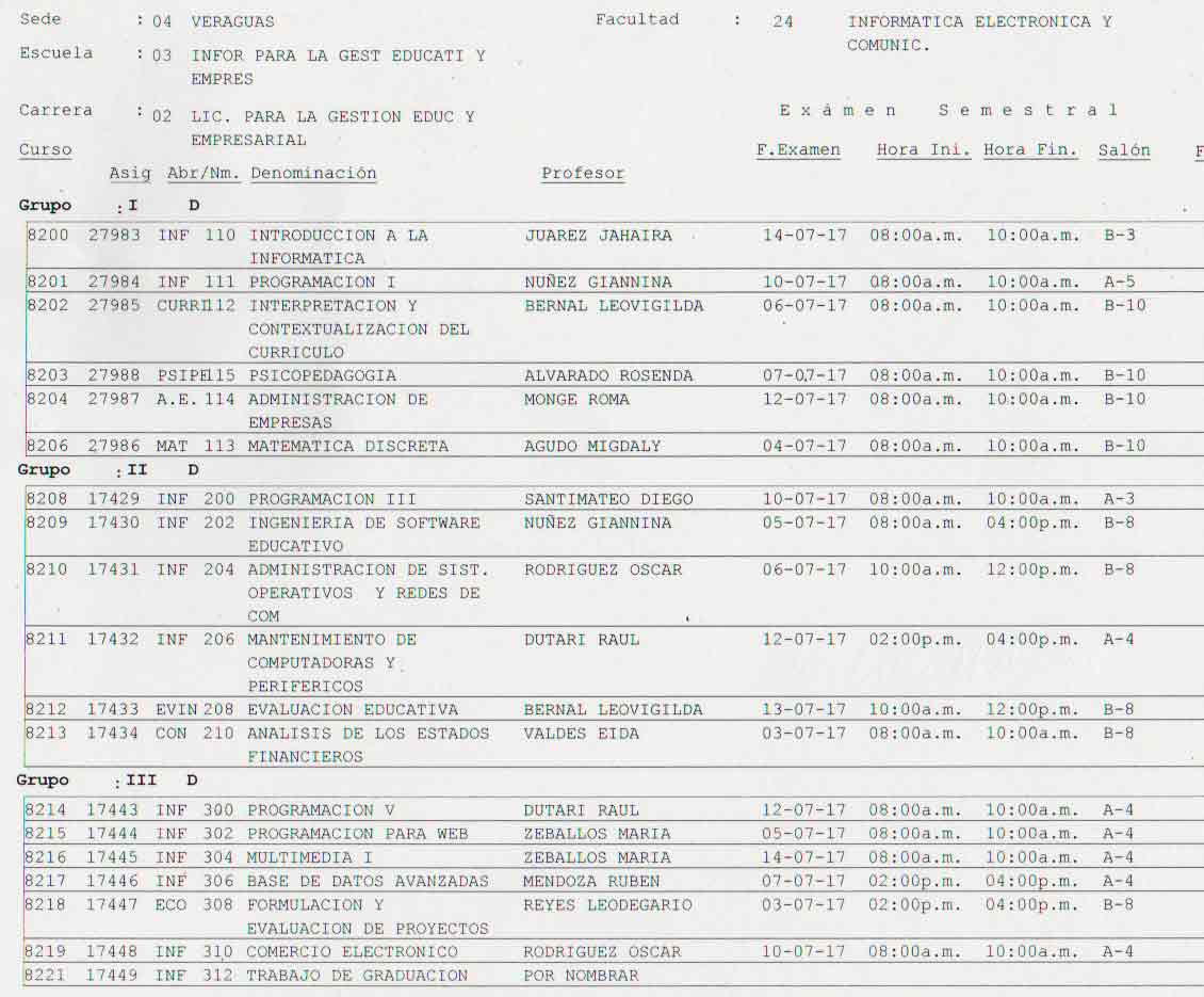 Horario de Exámenes Semestrales I-2017 Publicado: Martes, 20 Junio 2017 11:40 Visto: 1728 Imprimir Correo electrónico Horario de Exámenes Semestrales Informática para la Gestión Educativa y EmpresarialIngeniería en InformáticaTécnico en Informática Educativa Anterior Siguiente